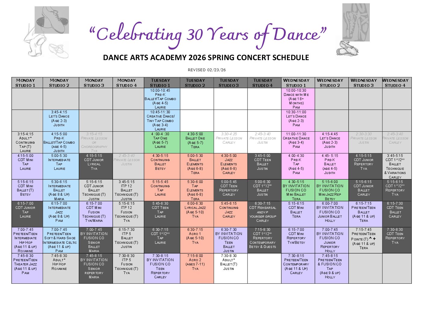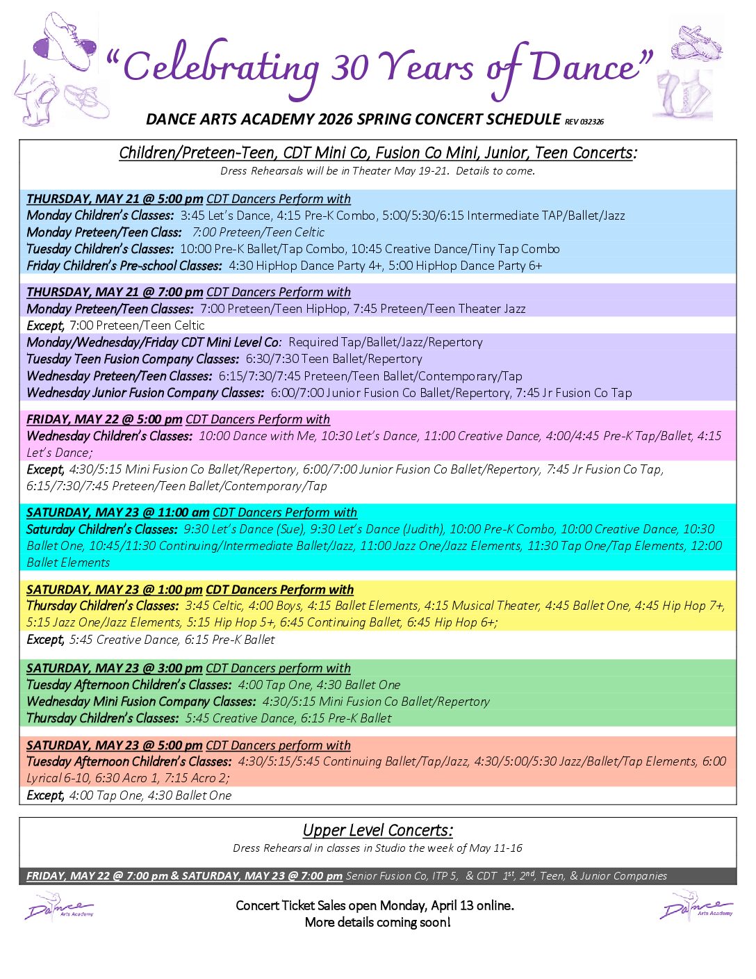 Tickets sold online only. Details below. Tickets will not be available at Dance Arts Academy.