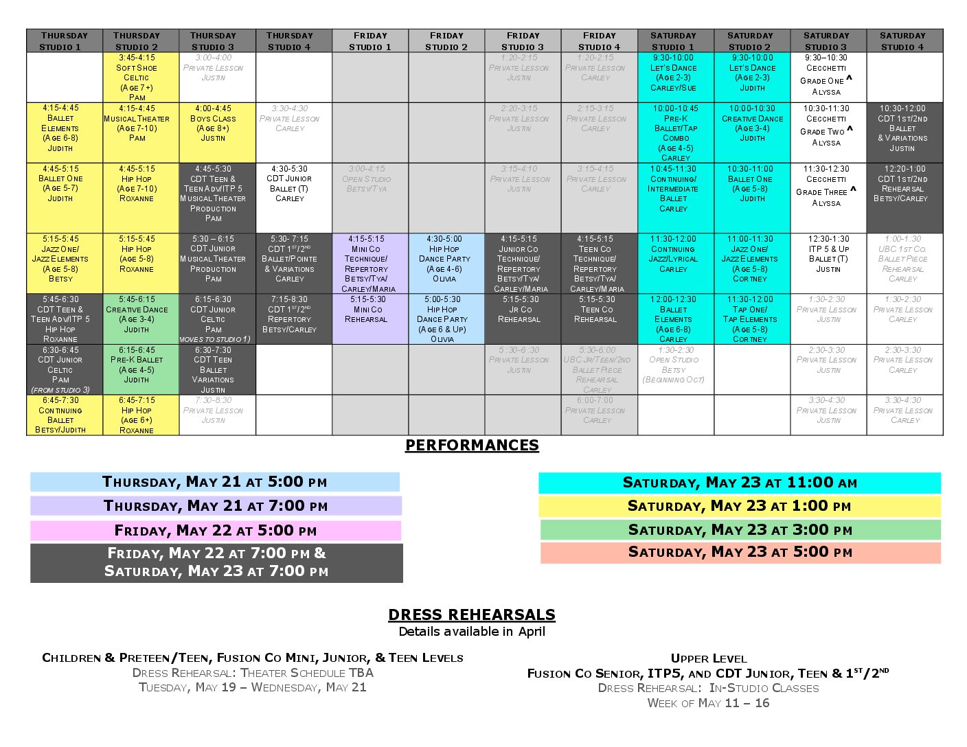 Upper-Level Concert Dress Rehearsals in studio. Schedule TBA.